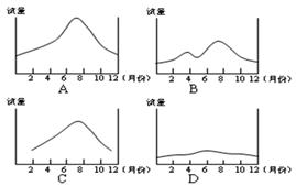 (1)图中河流流量年变化曲线,最有可能是下列四图中的?图。(1分)