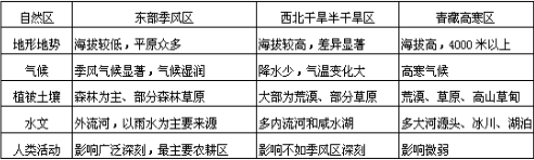 中国三大自然区的区域差异及区域内部差异: 2、界限: 三大自然区的内部差异: 1、东部季风区的南北差异 3、青藏高寒区的垂直差异: 中国三大自然区: