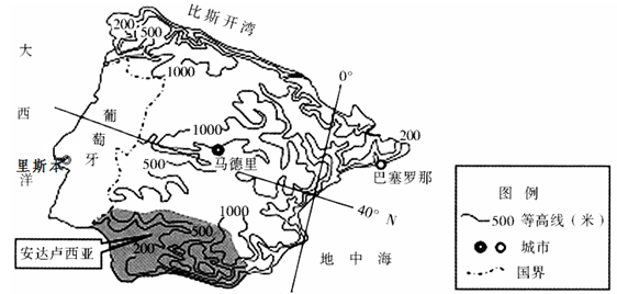 材料一 西班牙是世界橄榄油第一大生产国。图中阴影部分为安达卢西亚,是该国油橄榄的最大种植区,其产量高,品质好。油橄榄喜光,喜温暖,适合生长在排水良好的坡地。 材料二 马德里、里斯本的气候资料。