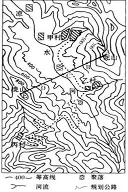 【小题4】图中虚线是规划在几个村庄之间修建的公路,乙村到甲村的线路比较平直,乙村到丙村的线路比较弯曲,呈“之”字型。这样规划能反映出山区公路建设中应遵循的原则是( )
