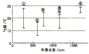 小题2:气候特点为“冬季温和多雨、夏季炎热干燥”的地方是