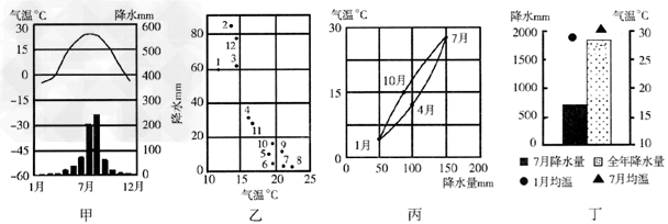 【小题1】四个城市中,7月气温低于1月气温的是( )