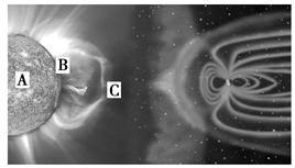小题1:读太阳外部结构示意图可知,这次到达地球的带电粒子流来自于图中的
