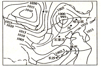 第(1)题,由图可知,甲地气压较高,从气流状况看,影响甲处的天气系统是反气旋,在该系统的控制下,乙处的天气特点是天气晴朗干燥。