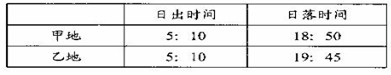 4、单选题 下表为6月1日我国甲、乙两地日出、日落时间(北京时间),据此完成下面问题