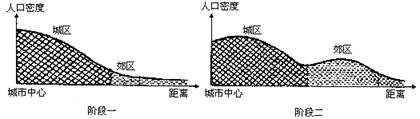 (2)阶段II中,城市中心人口密度下降的主要原因有哪些?