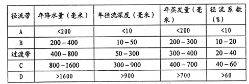 3、单选题 该表为中国河川径流带主要特征值,据此回答9-11题。