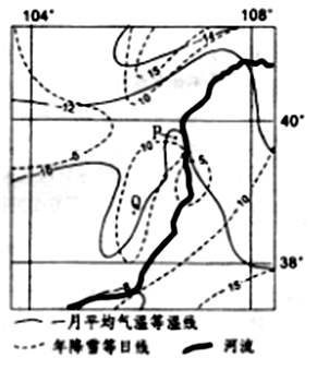 本题解析:该题考查中国区域地理知识,此类题需要有较高的空间定位能力。根据经纬网可知,图中河流为黄河,而黄河不是我国航运最繁忙的河流,是我国含沙量高的河流,冬季是河流的枯水期,根据图中等温线值可知冬季河流有结冰期。