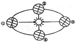 图中各点表示的北半球节气是①____、②______、③______、④______。