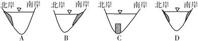 1、单选题 该图为河道剖面图,阴影部分为河流堆积物。图中能正确表示南半球自西向东流的河流的是