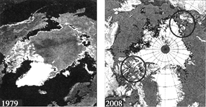 3、单选题  据英国《每日邮报》消息:最新卫星照片显示,北极在人类历史上首次成为一个岛屿。结合下图完成38题。