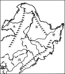 本题解析:图中A为内蒙古高原上的内蒙古自治区;B为小兴安岭。甲为东北平原,地广人稀,人均耕地面积大;生产规模大,机械化程度高;专业化程度高但 热量不足;乙为松嫩平原,这里的沼泽(湿地)要保护。丙为辽中南工业区,有丰富的煤、铁、石油等自然资源。