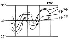 5、单选题  该图为世界某地区一种天气现象移动的基本规律(实线代表开始月份,虚线代表结束时间),图中二条经线之间间隔为5°。据此回答下面2题。