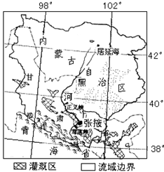 2、综合题 黑河是我国第二大内流河。黑河最终注入内蒙古西部的居延海,居延海于上世纪九十年代曾干涸见底。近十年来,黑河全流域进行了综合治理,尤其是张掖地区采取了一系列措施,取得了显著成效,居延海恢复了部分水域,重新焕发了生机。读“黑河流域图”,回答下列各题。