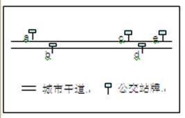 4、单选题 下图为某城市主干道公交站牌分布示意图,读图完成下列各题。