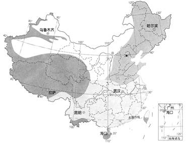 参考答案:①哈尔滨、②武汉、③乌鲁木齐、④昆明、⑤拉萨、⑥海口
