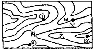 (5)注意比较甲、乙、丙三个聚落的区位条件,找出区位最优聚落。由图中等高线数值可知,乙、丙两个聚落所处地势高;而且乙处于山脊上,坡度较陡,或者地形起伏较大;距河流较远,水源相对不足,不利聚落发展。甲位于盆地内部,地形平坦开阔;河流交汇处,水源丰富;交通便利,对外联系方便。