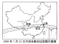1、综合题 2009年7月22日上午上海将能观察到一次壮观的日全食。读图回答问题。