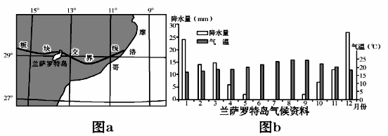 材料一 某区域图(图a)和兰萨罗特岛气候资料图(图b)。