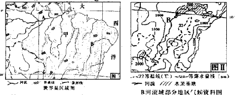 (3)根据材料一,分析图Ⅱ阴影部分地区成为甲国优质热带水果种植基地的有利自然条件。(9分)