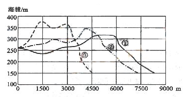 4、单选题 甲、乙两地点之间有三条道路相连。某地理活动小组测绘了这三条道路的纵向剖面图