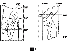 小题1:从图中经纬度来判断方向,或者甲图为斯堪的纳维亚半岛,乙图为朝鲜半岛来判断。