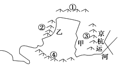 小题2:人们在甲乙丙丁地最有可能看不到古长城遗址的是?