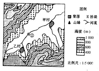 小题1:图中山峰与桥梁①的相对高度最有可能是