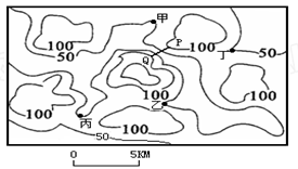 1.读图,仔细观察,可以看到PQ之间的两条等高线其实是一条,都是50米等高线,河谷位于这两条线之间,P、Q两点的海拔是100米,所以与其下溪谷的高差范围是50-100之间,所以C对。A、B、D错。另根据公式计算,P或Q与溪谷之间只有两条等高线,根据高差公式,(n-1)·d﹤H﹤(n+1)·d,也可得到相同结果。