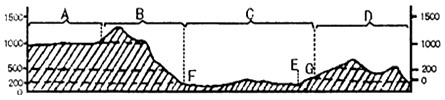 3、综合题 下图为沿满洲里(49.5°N,117.5°E)—绥芬河(44.5°N,131°E)一线的地形剖面图,读图回答