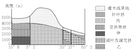 4、单选题 下图为某山脉山坡的垂直植被分布图,读图完成小题。