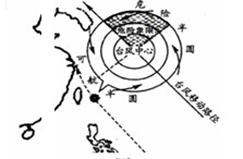 小题2:由图知道,台风发源于太平洋然后西侧亚洲大陆挺进,所以右半圆应该位于海洋,故A错误;地转偏向力只影响风的方向并不影响风力、风速,故C错误;根据台风(气旋)气流的方向与台风的移动方向,左半圆的风向和台风的移动方向相反,故D错误。正确答案是B。