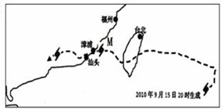 小题1:当台风中心位于图中M地时,漳浦的风向是