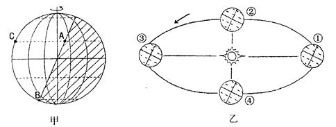 (2)该日太阳直射的纬度是 。当地球运行到乙图中的③位置时,北半球正午太阳高度达最大值的范围是 。