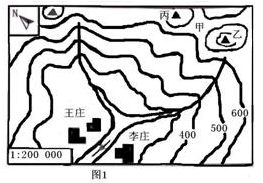 小题2:量得乙丙两山峰图上距离为1.5厘米,则实地距离是(?)