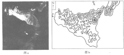 4、单选题 图a为2002年10月30日由卫星所拍摄意大利西西里岛某灾害发生后第4天的影像,图b为该地区的等高线图。回答问题。