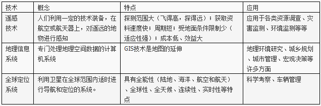 点评:本题难度较大,通过卫星所拍摄的遥感影像图考查自然灾害的种类、环境灾害的监测等。现将现代技术在地理环境中的应用总结如下。