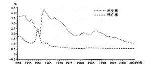 A.高——高——低模式 B.高——低——高模式 C.低——低——高模式 D.低——低——低模式 3、单选题  读下面“甲、乙两国人口出生率与死亡率变化曲线图”,完成1—2题。