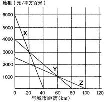 1.Y农业生产分布的边界范围与城市距离分别是2.影响X、Y、Z的主要农业区位因素有3.X、Y、Z的农业生产分别对应