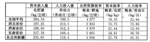 2、单选题 下表为我国不同地区2000年粮食生产效率表,根据表,回答题。