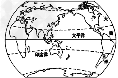 5、综合题 下图中A 、B 、C、D 、E 代表的是主要农业地域类型在世界的典型分布,读图回答。