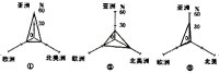 4、单选题 下图为2002年亚洲、欧洲、北美洲(除墨西哥)的谷物进、出口量和生产量占世界的比例。据此图并结合表1完成7-8题。