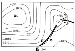 (1)图中甲气压带的名称是 ;根据图中气压带、风带的位置,可以判断上图所示是北半球的 (季节)。(4分)