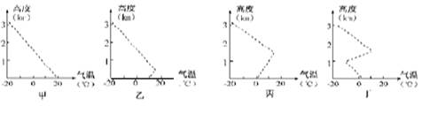 1.甲、乙、丙、丁四图中最有利于大气污染物扩散的是2.若该地气温由甲逐渐演变到丁,则造成气温垂直变化的原因可能是