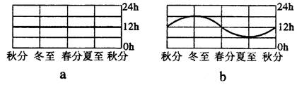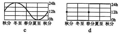 【小题1】根据昼夜长短变化规律可知,北半球夏至日昼长达最大值;d在春分日到秋分日的昼长都为24小时,即发生极昼,故该地为北极点,位于北半球。