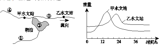 【小题2】乙水文站洪峰流量峰值小于甲水文站,主要是因为甲、乙水文站之间( )