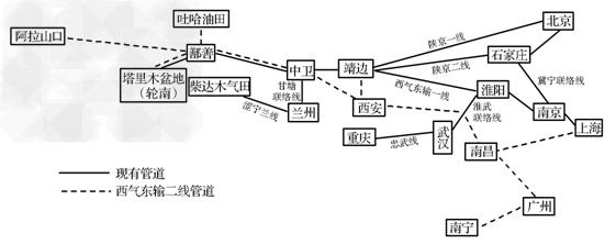 (1)“西气东输”主干管道西起轮南油气田,东到B表示的? 市