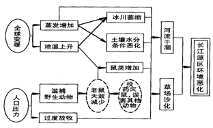 5、综合题 图示为长江源区环境恶化过程示意,试从自然和人类活动两个方面概述长江源区环境恶化的原因,并提出防治的建议。