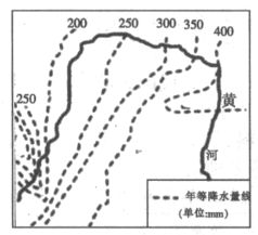 小题1:读图,根据河流形状判断图示区为我国黄河流域,图中等降水量线数值由东南向西北递减,说明受海洋影响减小,①对。在图左侧出现一降水较多区域,可以判断是贺兰山地区,迎风坡降水多,说明受地形影响,③对。冬季风水汽少,一般不带来降水,②错。这里是内陆地区,不受洋流影响,④错。所以C对。A、B、D错。