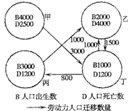2.根据图示的人口迁移状况分析,图中丁地人口迁入最多,经济发展水平较高、就业机会最多。所以本题选择D选项。